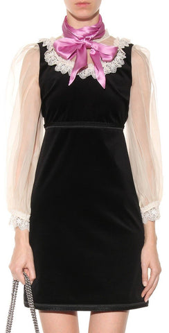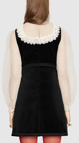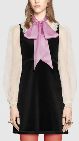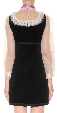 Black Velvet Organza Dress with Bow Detail