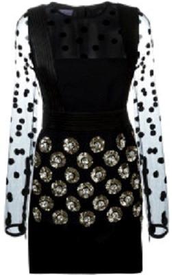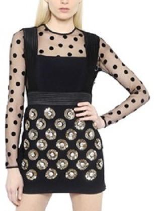 Black Sheer Panel Polka Dot Sequin Dress - DESIGNER INSPIRED FASHIONS