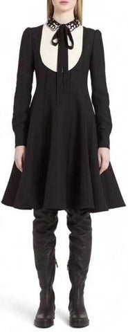 Black Tuxedo-Style Embellished Collar Dress