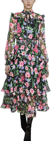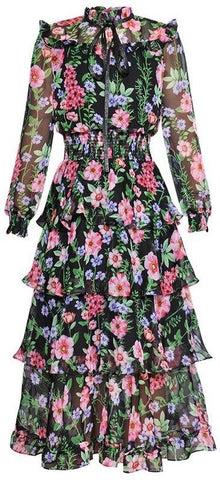 Floral Print Tiered Smocked Dress