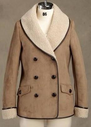 Double Breasted Faux-Suede Fleece Short Coat in Khaki - DESIGNER INSPIRED FASHIONS