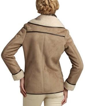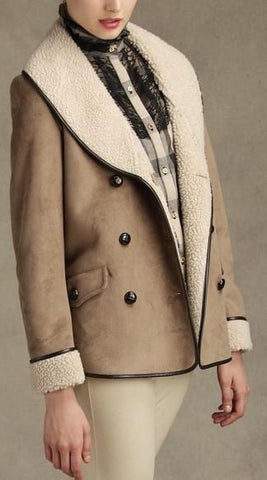 Double Breasted Faux-Suede Fleece Short Coat in Khaki