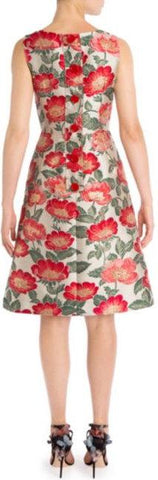Floral Jacquard Embroidered Sleeveless Dress