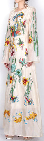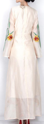 Long Embroidered Organza Dress - Multi-Color
