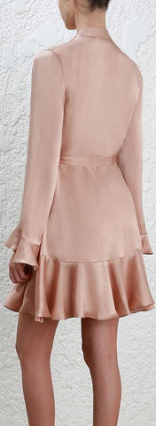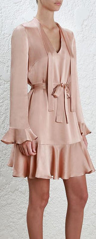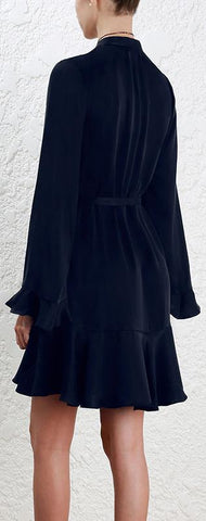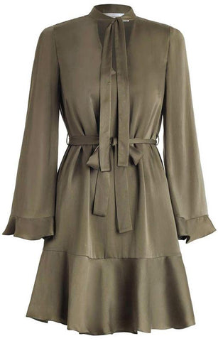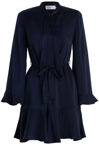 Flutter Tie-Neck Dress - Pink, Green or Dark Navy