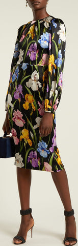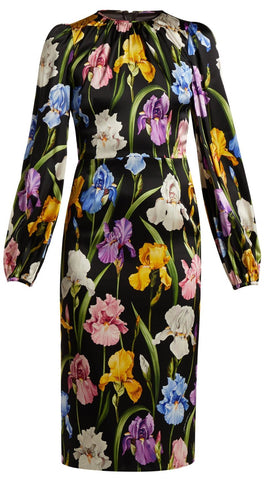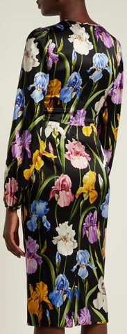 Iris-Print Charmeuse Midi Dress