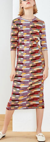 Knit Multi Colored Midi Dress