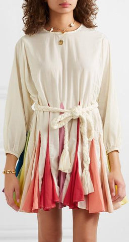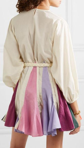 Belted Color-Block Cotton Mini Dress