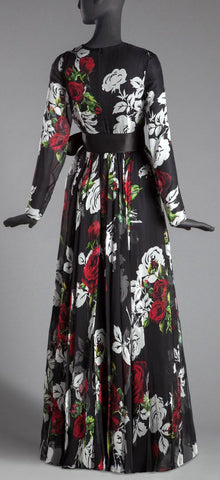 Long Elegant Floral Print Silk Dress - DESIGNER INSPIRED FASHIONS