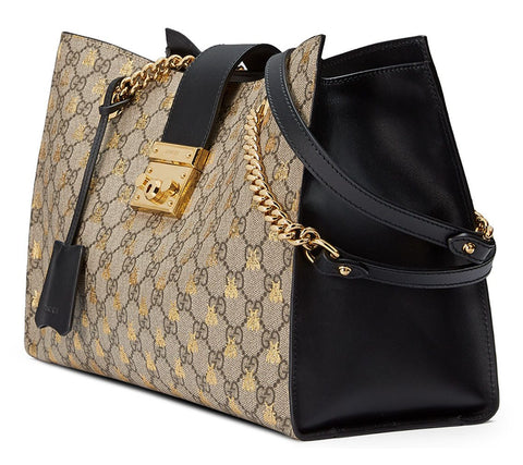 Padlock GG Supreme Canvas Bees Medium Shoulder Tote Bag