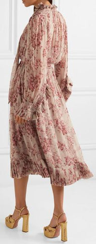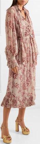 Unbridled Pussy-Bow Floral-Print Georgette Midi Dress
