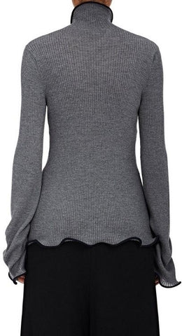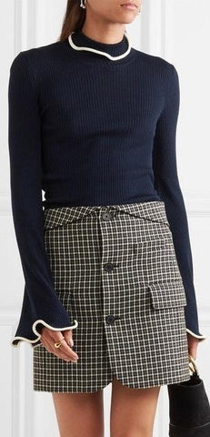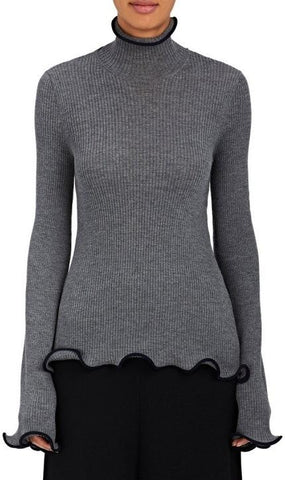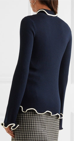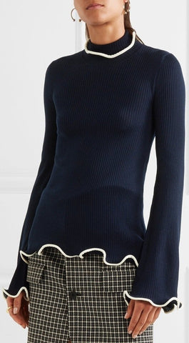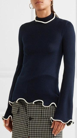 Ruffled Rib Turtleneck Sweater - Dark Blue or Grey