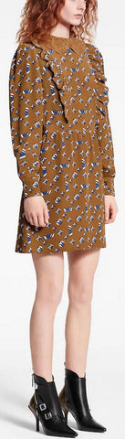 Long Sleeve Dress with Embroidered Collar and Frill Detail